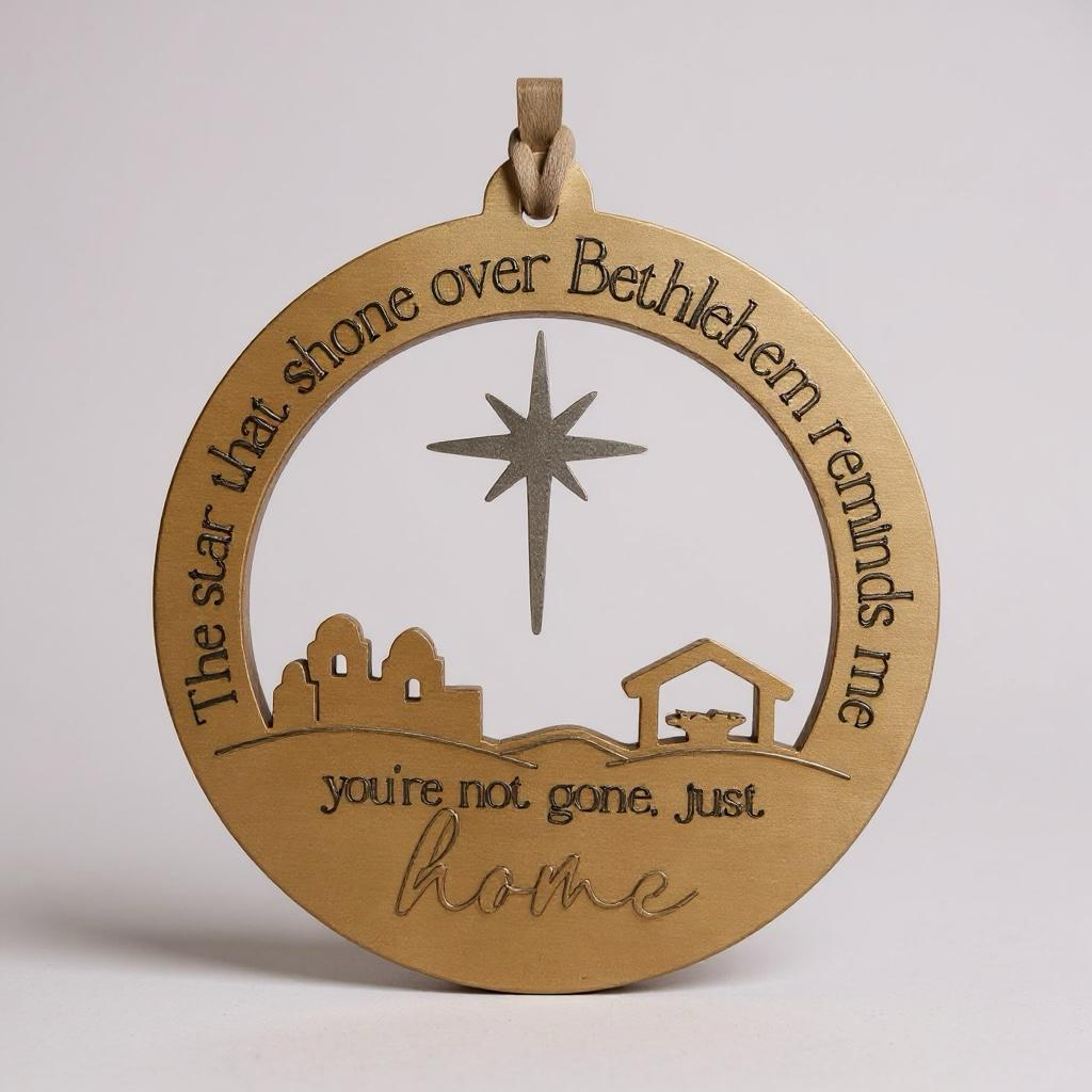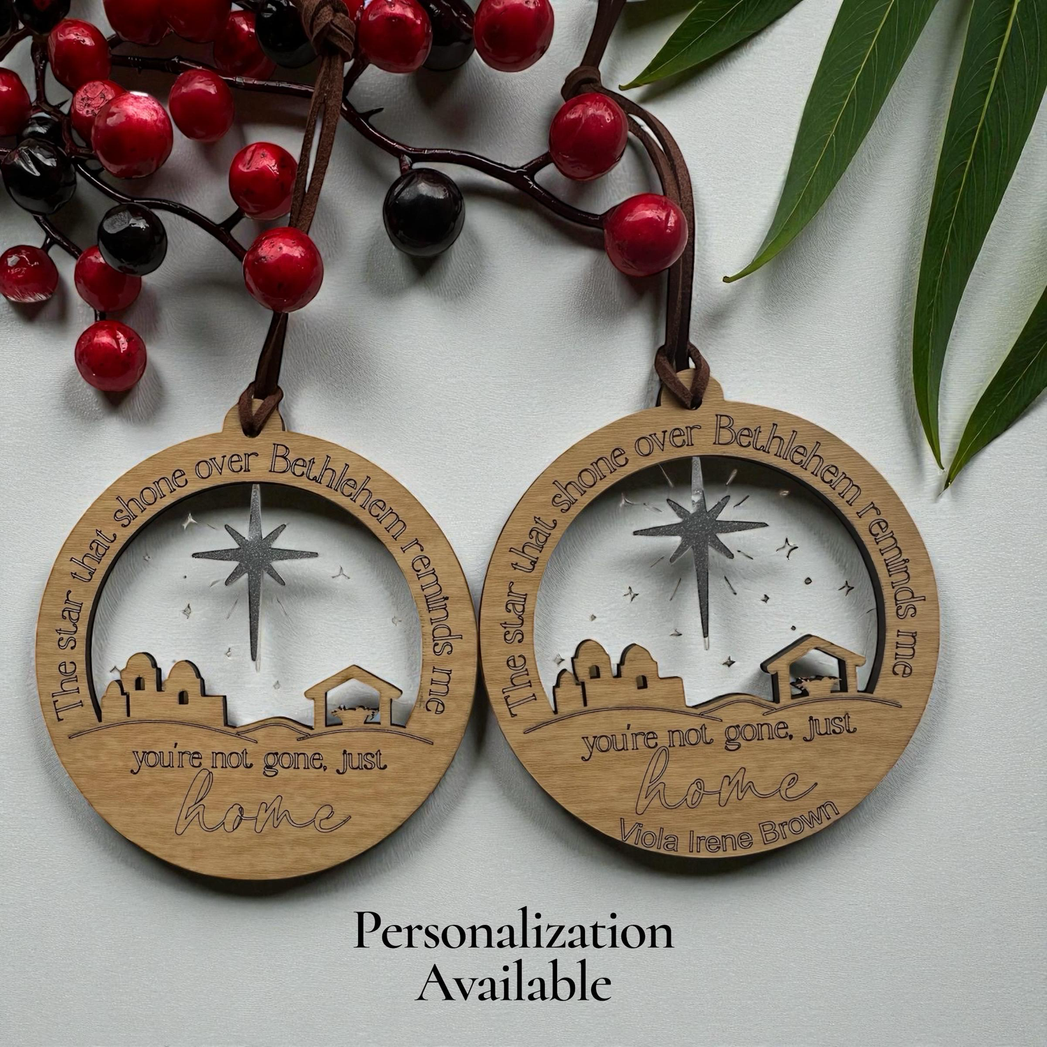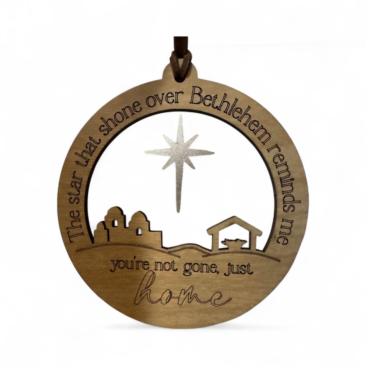 Bethlehem Memorial Ornament, “You’re Not Gone, Just Home,” Laser Engraved Wood and Clear Acrylic Christmas Keepsake