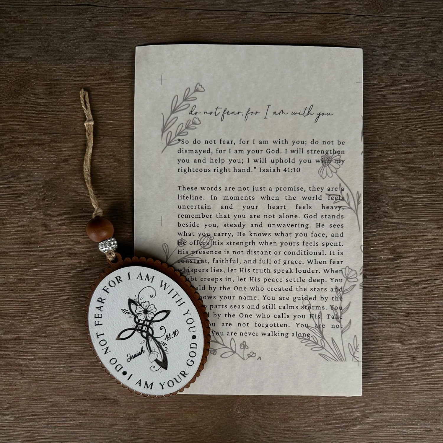 Featuring the comforting verse from Isaiah 41:10 — “Do not fear, for I am with you; I am your God,” this piece offers daily encouragement and peace.